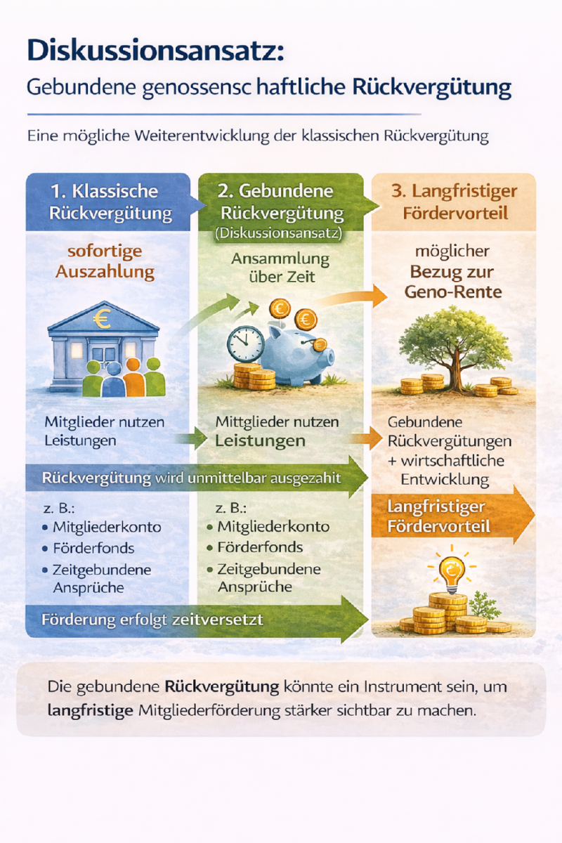 Ein Modell gebundener Rückvergütung könnte verschiedene Effekte entfalten. Für Mitglieder könnte ein langfristig wachsender Förderanspruch entstehen, der den wirtschaftlichen Nutzen der Mitgliedschaft nachvollziehbar macht.